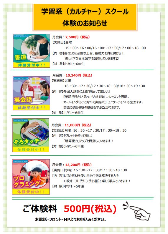 4月新たな習い事をお探しの方へ キッズスクール体験のご案内