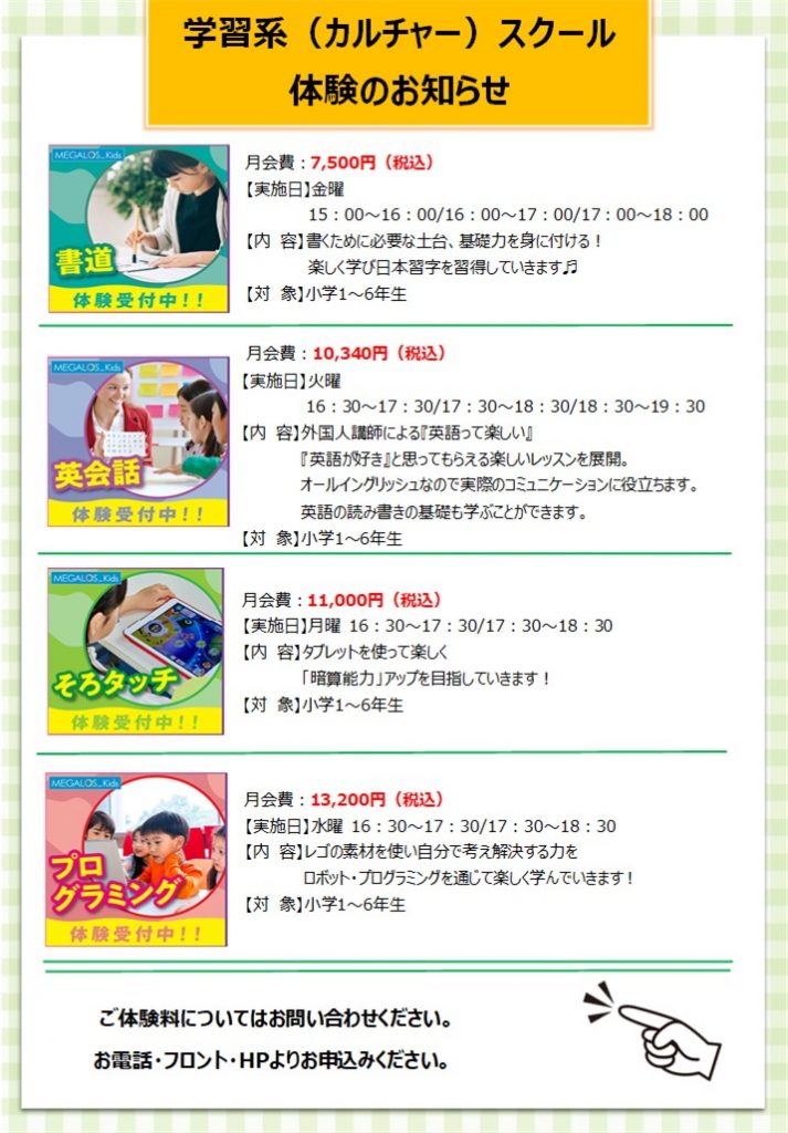 【2月】各種キッズスクール体験のご案内
