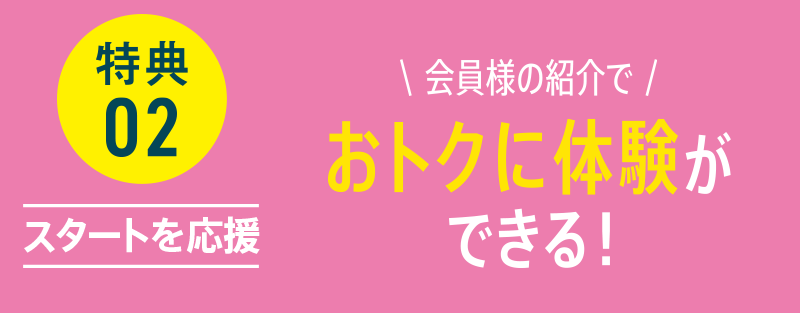 下記の「紹介特別体験」画面を受付でご提示いただくとお得にご体験いただけます