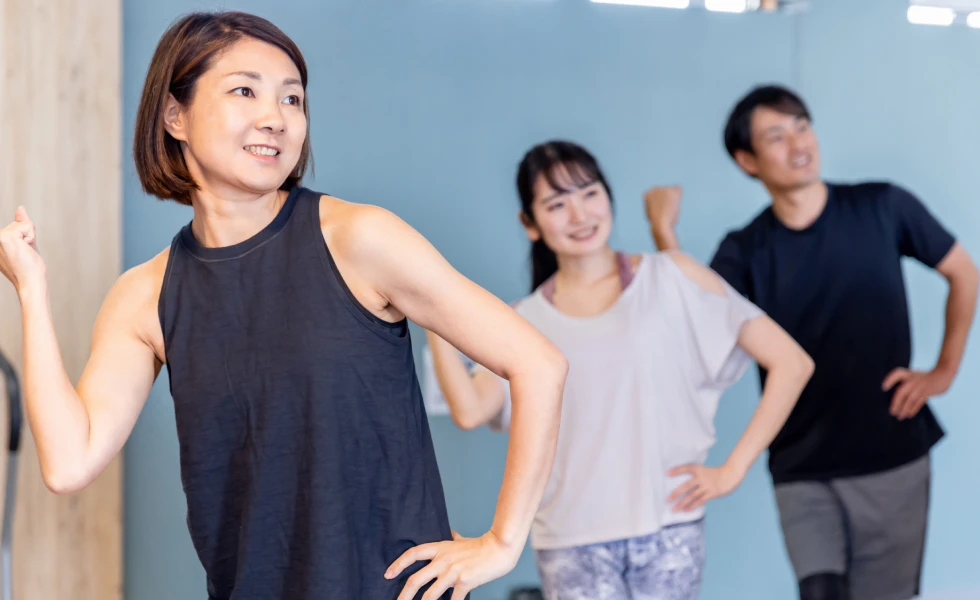 基本的なダンス動作を徐々にダイナミックな動きへと変化させていくアクアダンスの入門クラス。
