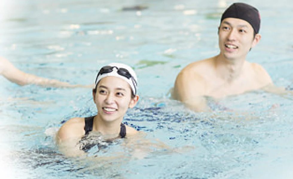 水着のデザインの指定はございませんが、スポーツタイプの水着をおすすめしております。スイムキャップは必ず着用、ゴーグルの着用は自由となっておりますが、衛生上おすすめしております。