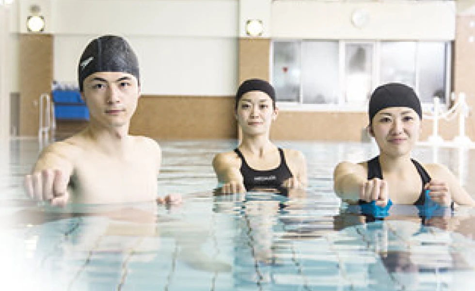 水中で音楽に合わせて格闘技系のパンチとキックをパワフルに繰り返して運動していくクラス。