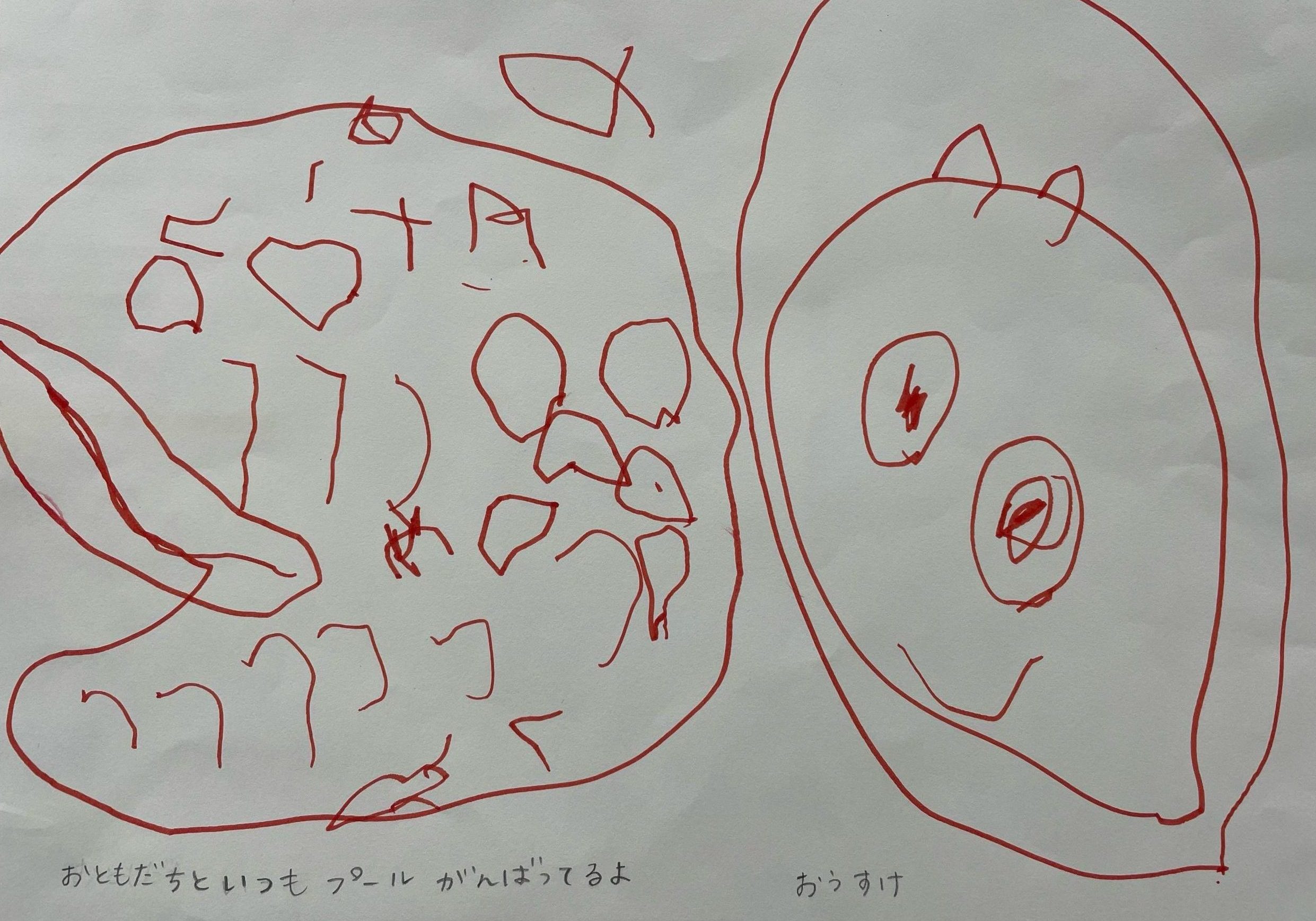 おうすけくん いつも笑顔でプールに来てくれてありがとう。 お友だちとのプールが楽しいと言ってもらえるとコーチたちも とっても嬉しいです。これからも一緒に頑張ろうね!(スイミングコーチ 若生)