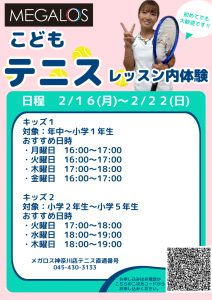 2月テニスキッズスクール体験情報
