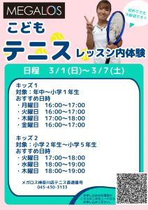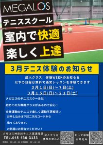 【キッズテニス】3月体験受付中 天候に左右されない室内で、テニスはじめませんか?