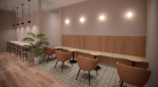 落ち着けるなラウンジをご用意。ご自由におくつろぎいただけるスペースです。運動後のくつろぎや、コミュニケーションスペースとしてご活用いただけます。