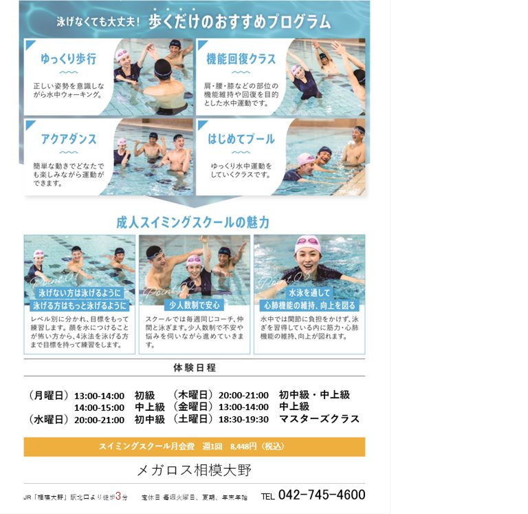 ご不明点がございましたら、メガロス相模大野までお問い合わせください。