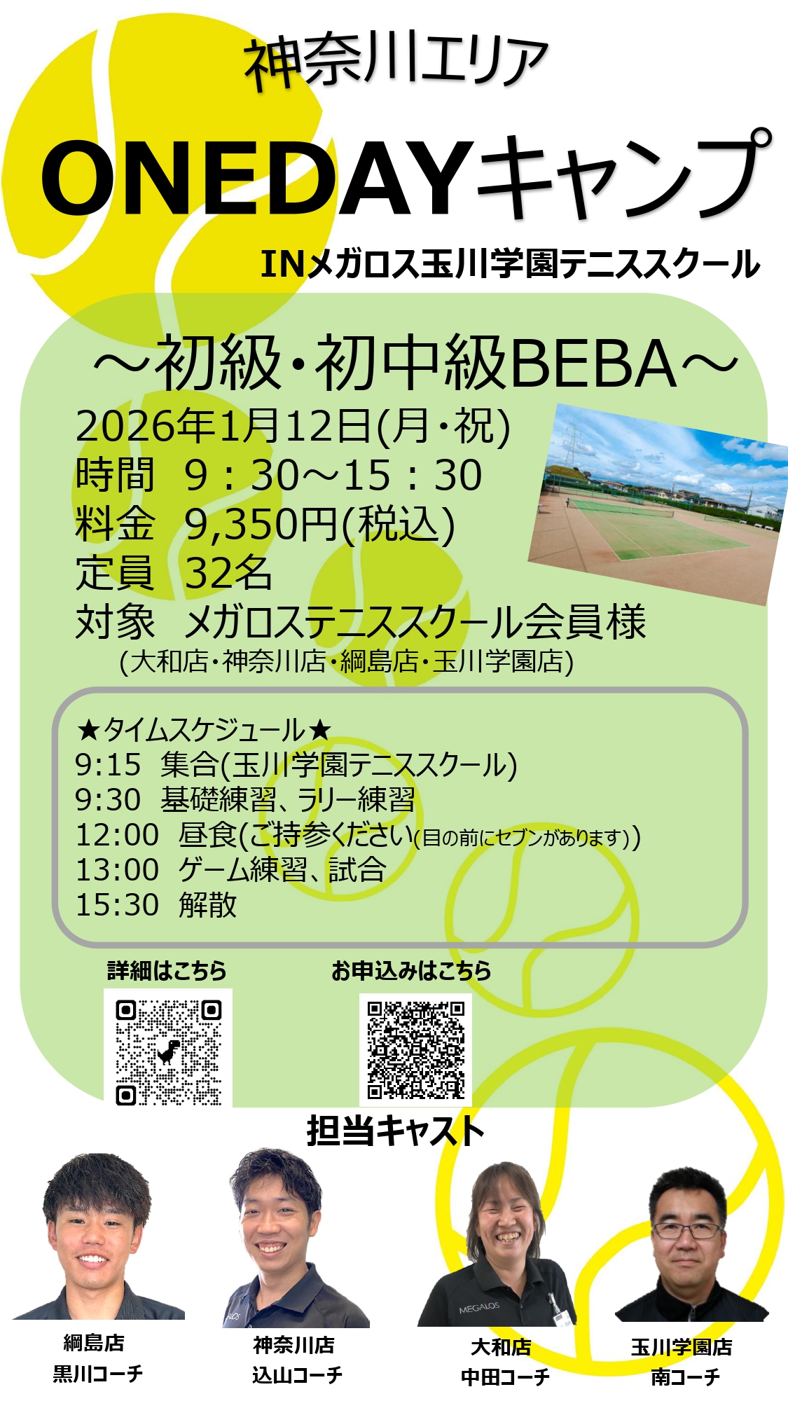 テニススクール【2026年1月】タイムスケジュール・スクールカレンダーのご案内