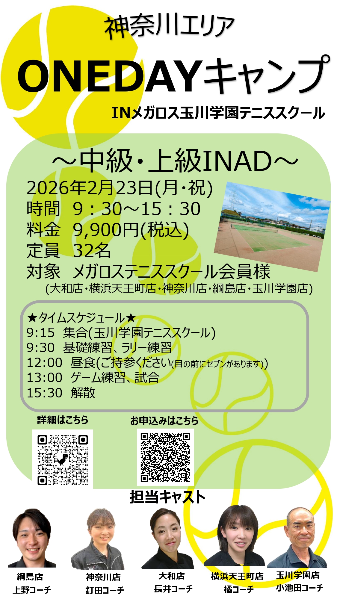 テニススクール【2026年2月】タイムスケジュール・スクールカレンダーのご案内