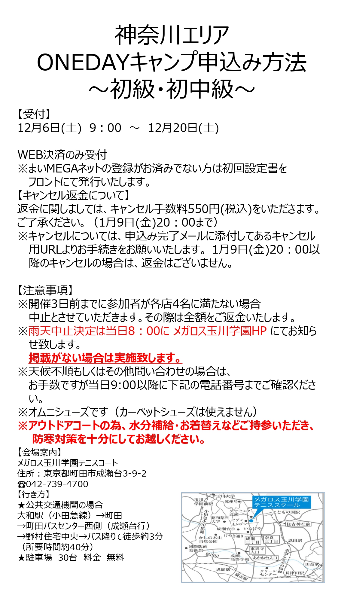 テニススクール2026年1月タイムスケジュール・スクールカレンダーのご案内